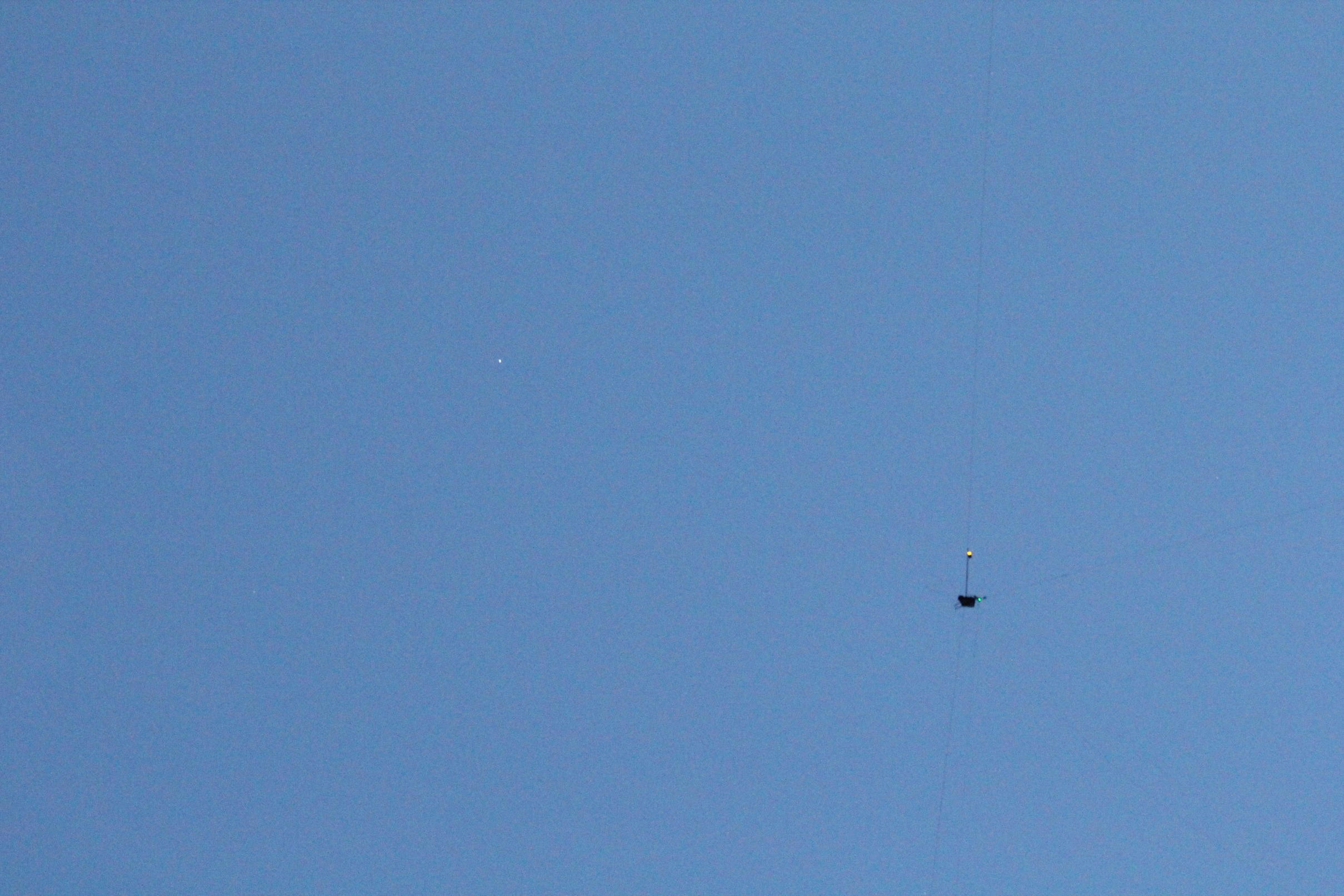 Le laser installé dans la nacelle permet de bien visualiser le positionnement de la nacelle vis à vis des miroirs Sud et Nord (en les illuminant).