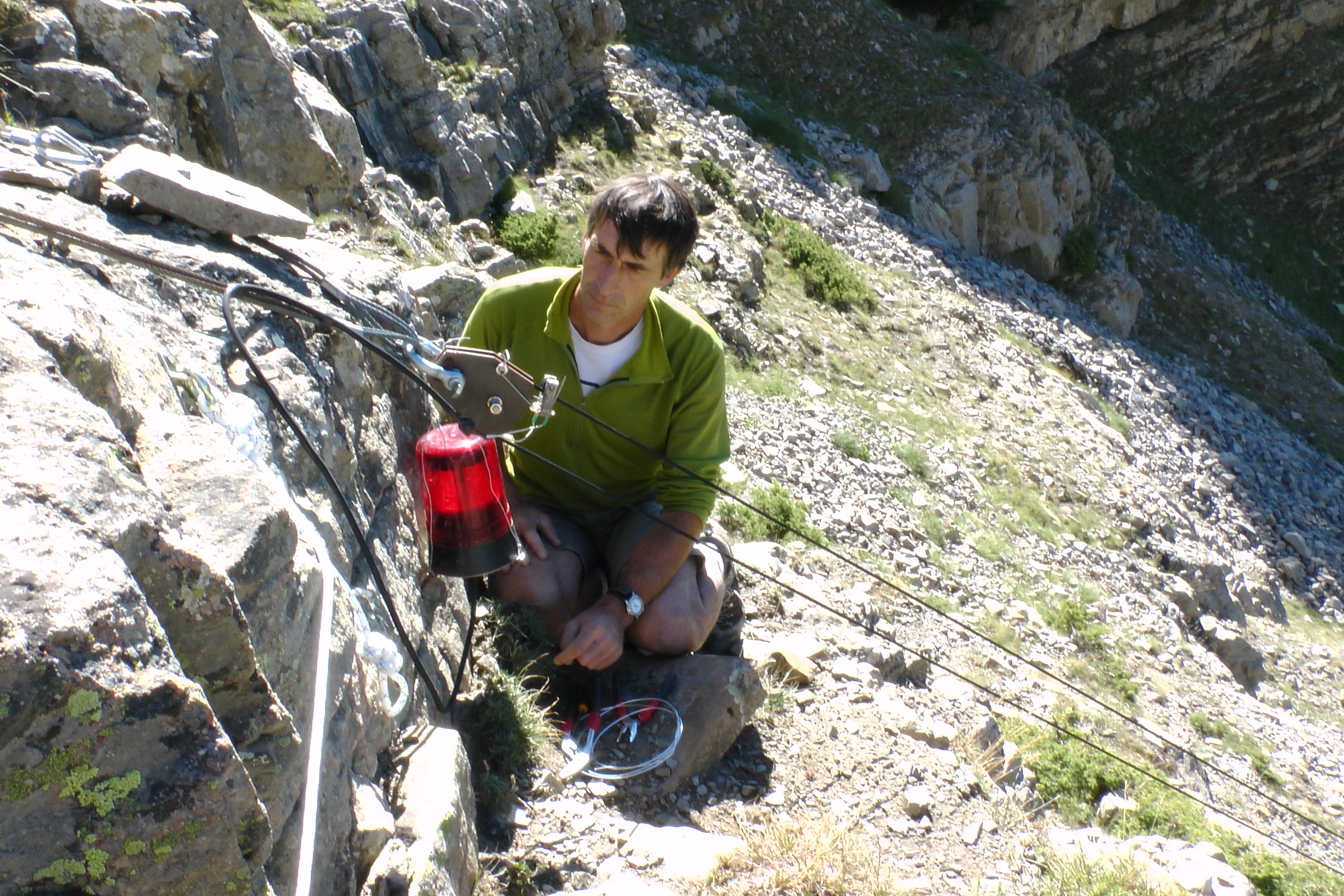 Réparation de l'interrupteur de déclenchement du flash aviation au niveau de l'ancrage nord du câble porteur (J.-P. Rochaix) 2012-©MR |